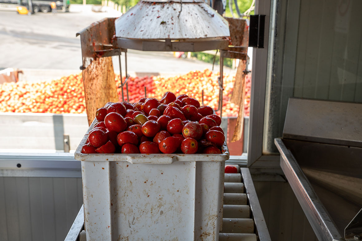 Ab Juli werden die ausschließlich sonnengereiften Tomaten mit einem Vollernter geerntet. Das passiert in einem sehr kurzen Erntezeitraum und geht so zügig, dass sie im Anschluss direkt verarbeitet werden und ihre Nährstoffe konserviert werden.