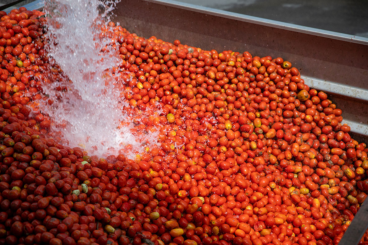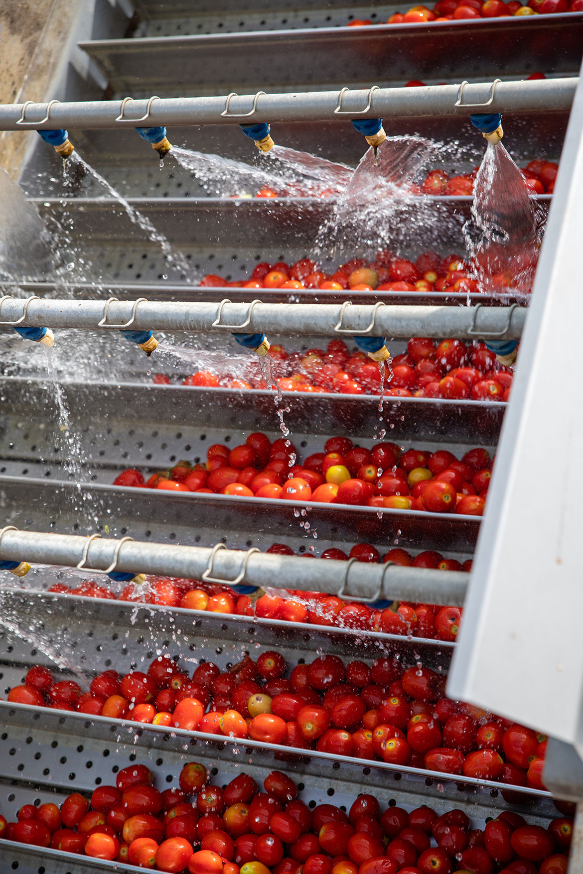 Was dann in der Fabrik geschieht: Die Tomaten werden gewaschen, sortiert und gereinigt. Die Rohwaren schwimmen in großen Schwimmbecken, wandern von Becken zu Becken und werden auf überdimensionalen Rolltreppen zur Weiterverarbeitung transportiert. Und erneut der Qualitätscheck: Denn hier werden die Tomaten ein weiteres Mal händisch (aus)sortiert, bevor die Verarbeitung beginnt.